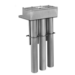 Series 3P, 3F, 3S, and 3T: Three-tube metal immersion heaters – includes diagram